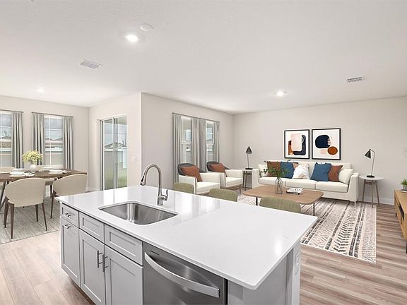 One or more photo(s) has been virtually staged. Under Construction. Check out the Calusa, a single-story home where convenience and style go hand in hand! As you step through the bold, eye-catching elevation and professionally designed landscaping, you'll enter an impressive floor plan featuring 4 bedrooms, 2 bathrooms, and a 2-car garage. The first two bedrooms are accessed through the foyer and are connected by a convenient Jack and Jill bathroom. Continue through the extended foyer to discover an additional bedroom, a well-appointed bathroom, and a spacious laundry room with washer and dryer included. Prepare to be impressed by this kitchen, showcasing 42" upper cabinets, quartz countertops, stainless-steel appliances, and a large center island, all set against luxury vinyl plank flooring. The kitchen flows seamlessly into the expansive living room and the formal dining area which opens to the covered lanai through elegant sliding glass doors. The owner's bathroom is a retreat of its own, featuring a walk-in shower with floor to ceiling tile. Equipped with a smart thermostat for seamless climate control and energy efficiency, the Calusa delivers both cutting-edge comfort and outstanding design. Close to everyday conveniences and top-rated schools. Stay close to what’s important to you at Hawkstone, a Lithia master-planned community. Located just south of FishHawk Boulevard, residents are minutes away from US-301, I-75, and top-rated schools. Surrounded by breathtaking pond and wetland views, Hawkstone delivers the perfect mix of natural beauty and modern amenities right at your doorstep. Whether you're enjoying the serene scenery or the community perks, this is where you'll want to be. Discover your new home at Hawkstone today! Images shown are for illustrative purposes only and may differ from actual home. Completion date subject to change.