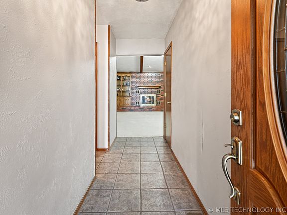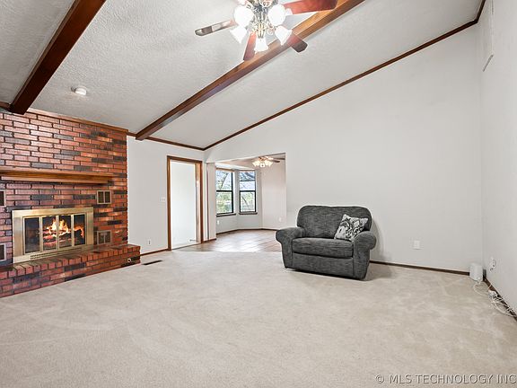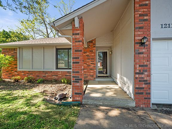 Owasso 3 bed 2 bath, full brick home located in Elm Creek I Addition. Livingroom with fireplace and vaulted ceiling. Sunroom providing a versatile space for leisure and activities, bathed in natural light. Kitchen with breakfast area. Primary with full bath and walk-in closet. Bedrooms with walk in closets share hallway bathroom. 1,714 square feet, located in a quiet cul-de-sac. Mature trees shade the expansive fully fenced back yard for enjoyable outdoor living. Shed for storage. Trails, Tennis and Volleyball courts at Elm Creek Park within walking distance. Minutes from restaurants, shopping, golf, Mills Elementary and Owasso High School. Easy access to Highway 169. Roof 2015.