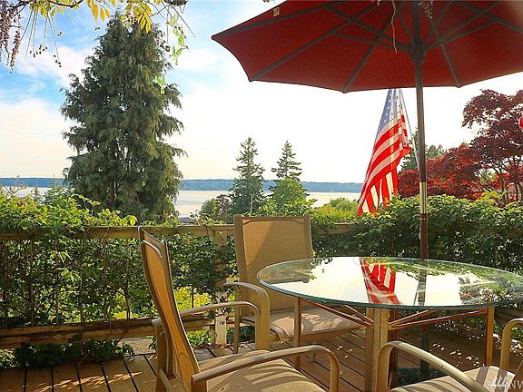 If you love the SEA this is your home. Charming and Character galore, Home sits high up off the street with sweeping views of the Sound and Mountains. Sit on your covered deck and watch the ships go by. Wonderful open concept, living, dining and kitchen, Great for entertaining Granite counters, SS appl. Double glass french doors open off the dining room out to a private covered patio with blooming trees, flowers and bushes, Smells like Heaven. Be apart of Shorewood on the Sound. Tranquility !