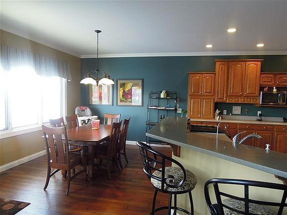Builders Residence. Open living floor plan. 12' ceilings in main area, 9' ceilings throughout. Large open kitchen. Extra wide crown and trim moldings. Large open lower level with wet bar and bonus room. Stainless JennAir range, Bosch Dishwasher. Separate Master Suite. $15,000 in finish upgrades in 2012. All closets walk-in. LED lights. Solid Core doors. Hickory Cabinets. Extra deep -26' garage with work area.