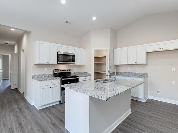 Interior features 3 bed 2 bath. White cabinetry and granite in kitchen and baths. Flooring is luxury vinyl floor planks. Exterior includes 2car garage, sod, sprinkler and fence. Estimated completion is late spring to early summer.