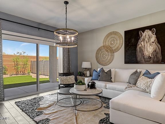 large kitchen island, stainless steel appliances & walk-in corner pantry. The large suite is tucked in the back of the home with a private bath & spacious walk-in closet. Additional upgrades include electrical, tile flooring, window coverings, enhanced front yard landscaping and garage door opener. **Photo Reflects model of the available floorplan. Upgraded options may vary.