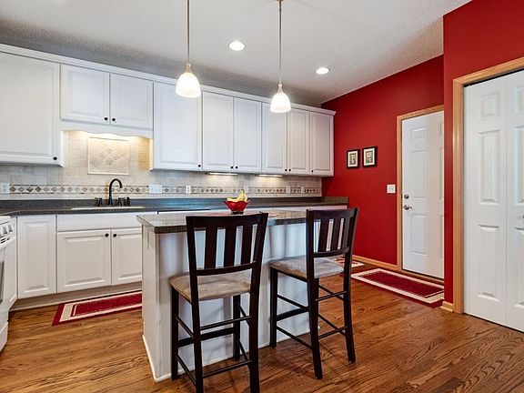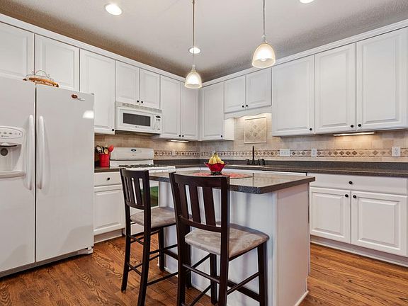 Rare fully finished end unit townhome in Zimmer Farms! Large and spacious main floor open concept with all amenities on one level. Built with many builder upgrades. Solid hardwood floors recently refinished, built in surround sound also wired in basement, enameled cabinets with pull out drawers, solid oak millwork, custom ceramic kitchen back-splash, kitchen island, solid surface counter tops throughout and gas burning fireplace with custom trim & mantel. Main level master suite w/ huge walk-in closet, master bath w/his and her vanity, separate walk in shower and whirlpool tub! Bright sunroom leads to finished deck and walk out stairs overlooking large open areas with mature trees. Fully finished lower level offering a large family room, additional bedroom, bath and tons of storage room. Extremely well maintained, new carpet & paint. This move in ready home is a must see!