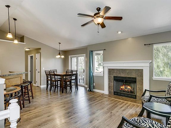 FRESH. New interior and exterior paint, carpet, newer laminate, freshly enameled woodwork upstairs, some new doors. A 5 bedroom home for under $200,000. Split bedroom floor plan, sprinkler system, sprinkler well, and a divided back yard for pets. Side yard has wrought iron fencing and artificial turf for easy pet clean up. Garage attic has decked floor for lots of extra storage space. Home is located right across from a neighborhood lake and playground at Woodland Lakes Estates, which also has a neighborhood swimming pool. Master bathroom has 2 sinks and a new jetted soaker tub in addition to the tub / shower combo! Two separate walk in closets. Lots of âHis and Hersâ bathroom features! Seller put in a nice stamped, stained concrete patio, part of which is thick enough for a hot tub and electric ready. Covered deck above it overlooks a nicely landscaped back yard with shade trees. Make it yours!
