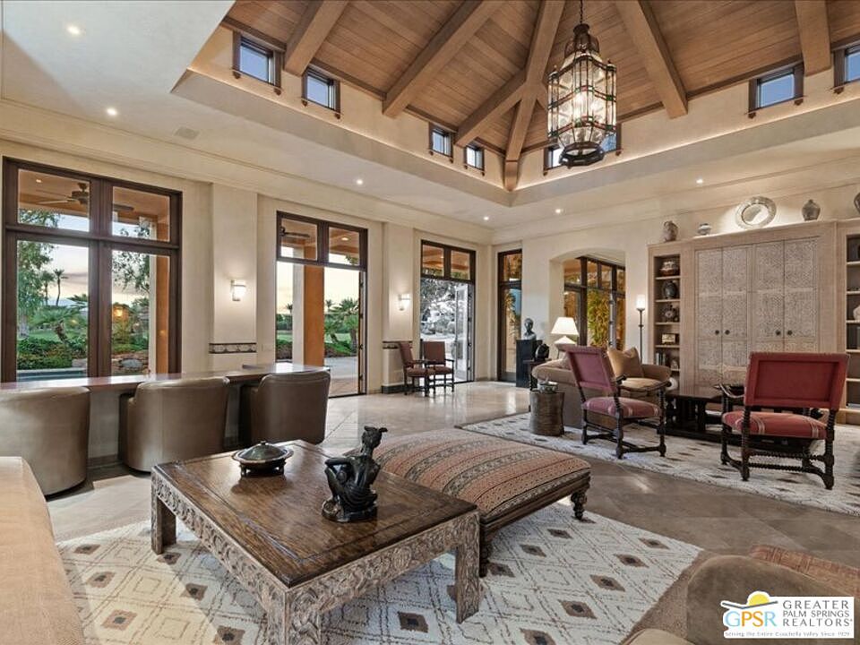 Not one inch of this stunning property has been overlooked. This custom 4 bedroom 6 bath was designed for the ultimate in elegance, and comfort yet affording a glorious retreat second-to-none. The moment one enters the interior courtyard through the 10' doors, the experience begins. Located in the highly desirable neighborhood of Mission Hills/ Fairway Estates on .52 acres awaits a 6,325 sq' bit of paradise. A tremendous great room with extraordinary beams high above, leads to a wall of custom doors and to the pool, golf course and panoramic mountains beyond. Built for ultimate entertainment and function. Whether it's the family game room with pool table and entertainment area, dining room with tables easily seating 16+, gourmet kitchen with island and superabundant appliances, adjoining octagonal breakfast room, or working in the impressive office (also overlooking the pool, spa, outdoor kitchen & dining-who wants to work anyway?). This home was designed to enjoy. An owner's suite offers a voluminous ideal escape: dual baths and walk-in closets. Two guest suites are separated by the family room which provides privacy and quiet. A fourth bedroom suite on the opposite side of the home is near the oversized garage and laundry room. Definitely a one-of-a-kind buyer. Could it be you?
