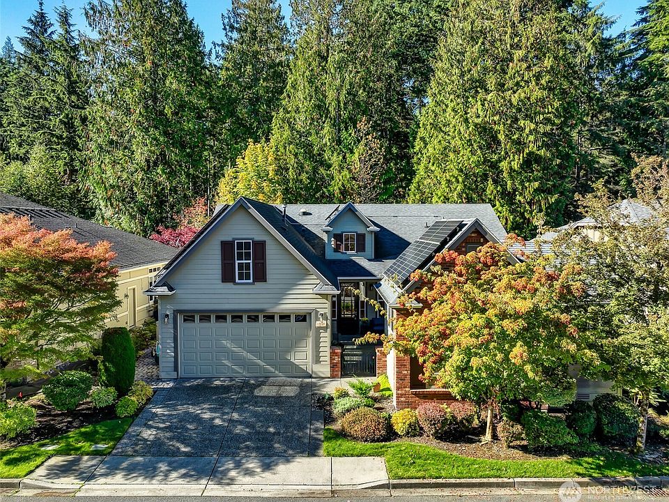 Pristine Hemlock model set on a premium greenbelt lot just a short stroll from the Cascade Club, the hub of Trilogy’s activities. The expansive vaulted great room features a gas fireplace and wood wrapped windows which frame the serene forest views. Chef's caliber kitchen inc. 42” upper cabinets and lowers w/pull-outs topped w/granite. Owner’s suite with five-piece bath, two walk-in closets and French doors that lead to backyard. True guest suite w/ sitting room, private bath, a full-sized closet plus linen cabinet. Laundry rm w/tons of storage & handy sink. 2-car garage includes shelving and multiple overhead storage racks. Bamboo hardwoods throughout (no carpet). 26 panel solar system/Electric car charger. Wired for Genset. A 55+Community