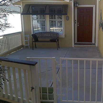 Great Cavco 2 + 2 model has large kitchen with eating area that was totally remodeled in 2018. All new cabinetry, appliances, paint, lighting and flooring. Entire home has be painted inside/outside, all new flooring, new custom shutters and new blinds, new lighting, new washer & dryer, central HVAC, 2 car garage with covered vestibule to utility room to kitchen. Separate home office/hobby room/store room or whatever with power and a/c. Front entry has fenced & gated cement patio with garage access. Fully covered large cement back patio has power & water with perfect sized yard & wrought iron style fencing. Prof. landscape & lighting around home. Front & back patios and vestibule are at ground level with just 1 step up to threshold.