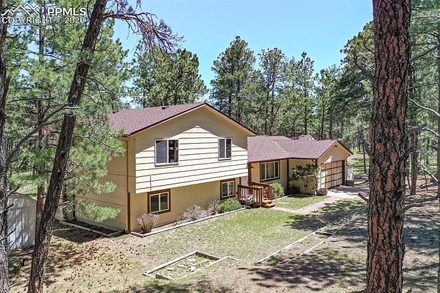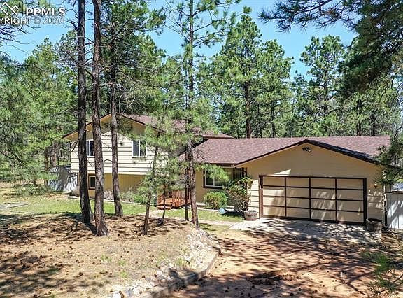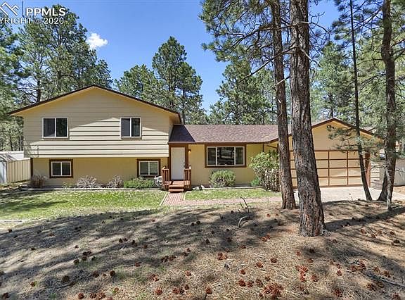 Close-in desirable south Black Forest location! The home has been fully remodeled with almost 2,900 sq ft on 4.95 rolling treed acres on a quiet end of cul-de-sac location with mature pines. So many new features and upgrades - all new flooring throughout, granite counters, lighting, paint throughout, tile, cabinetry, trim, toilets, doors, plumbing fixtures, all baths have been remodeled. Spacious kitchen with an abundance of cabinetry, slab granite counters, subway tile backsplash, recessed lighting, pantry, eat-in nook and stainless steel appliances. Large formal dining room with large picture window and tons of space for a large dining set. Spacious family room with wood beam, gas fireplace with full wall brick surround. Private master suite with walk-in closet and fully remodeled bath with double vanity with granite counter. Unfinished basement with room for additional bedroom/office space/game room. Beautiful outdoor space with towering mature ponderosa pines, rolling terrain with tons of lush grass, wildflowers, a large 20x14 deck with pergola, flagstone patio with fire pit and fenced back yard. Zones for horses, chickens and other livestock. No HOA or covenants. Barn, RV and outbuilding friendly. Close proximity with trail access to Section 16 and Pineries Open Space with hundreds of acres of open space and horse friendly riding or walking trails. Convenient south Black Forest location close to the amenities of Falcon and Powers. Multiple outdoor storage sheds.