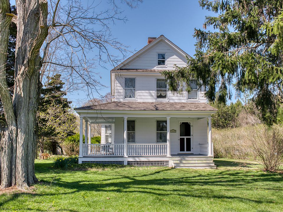 Beautifully preserved with many original details, intact turn of the century Farmhouse set on 1/2 acre with two original accessory structures and mature plantings. Three bedrooms, 1.5 baths, wrap-around porch, updated cedar shake roof, updated kitchen appliances, charming sunny mudroom, hard wood floors, original woodwork, and moldings. Large private rear garden that backs onto 36.5 acres of preserved walking trails with access to Dam Pond. Close to public beaches, State Park, East Marion Country store, Jitney stop to NYC and Greenport Village. Sound beach rights to Truman’s Beach.