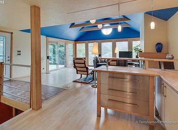 Very nice, artsy, unique, move-in ready Bungalow. Bright, open, great room floor plan with vaulted ceiling and wood-burning fireplace. Kitchen with stainless steel appliances, butcher block countertops, and newer flooring. Den/Office on main floor could be used as 4th bedroom. Oversized loft area for extra space. Master suite with walk-in closet and over-sized jetted tub with separate shower and tile floors. Mature front garden, deck, and fenced back yard with built-in vegetable bed. 3 blocks from the river, elk rock island, waterfront park, and many downtown restaurants and shops.