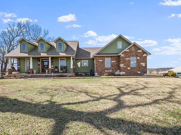 Missouri Ozark Farm with 4400 sq ft Custom Craftsman Style Home on 39 acres with a 1-acre lake and creek with highway frontage. This Southern Missouri farm is all in lush pasture fenced and cross fenced. There is a 40x40 shop and horse barn with 8 stalls and tack room. Located in a beautiful area just 10 miles from Walmart and conveniences of West Plains MO. This Missouri Home with acreage has 3 bedrooms, 3.5 bath with room for additional 2 bedrooms. The gourmet kitchen has custom hickory cabinets, concrete countertops, island bar and pantry. Beautiful hand scraped laminate hardwood floors. Open concept with arched doorways and split bedroom floor plan. Covered front porch and Lovely large entry and office located on main floor. Primary bedroom with walk-in shower and free-standing soaking tub, two sinks and spacious walk-in closet. Wonderful laundry room just off primary bedroom and garage with sink, folding and hanging area and half bath. Full finished walkout basement with family and recreational room, bath and plenty of room for 2 more bedrooms or additional living space. There are multiple options for outdoor living with large maintenance free covered deck off living room with scenic views of the farm, large patio off basement and grilling area off shop. Lots of storage space in house and above garage. Brick and Hardy Board siding is Maintenance free with beautiful mature landscaping. Beautiful large lake and the land is all lush pasture with piped fencing, horse fencing and barb-wire fencing. The shop is 40x40 with Lean-To on side and back. Shop has blown-in foam insulated with electric, water, LED lights, kitchen sink and cabinets, and work bench area. Lean-To used as grilling area with fire pit and back side for equipment storage. There are raised garden beds and garden shed. Everything manicured! Truly a Gentlemans Farm and perfect inside and out! Located close to all the amenities a town of 12,000+ can offer. Ozarks Medical Center is a top rated hospital that recently completed a $70 million expansion and offers General and Specialized medicine. Missouri State University of West Plains has a campus of approximately 2000 and has their own Womens Volleyball and Mens Basketball teams. West Plains is the shopping and entertainment hub of Howell County (which has a population of over 40,000) and several surrounding counties! We offer a large Farmers Market every Wednesday and Saturday morning and there are many specialized and boutique stores that offer anything from fresh meat to old-fashioned candy. There are plenty of restaurants to enjoy a relaxing meal, such as Coltons Steakhouse or Kikos Hibachi and Sushi. Alternatively, if entertainment is what you are after, the West Plains Civic Center plays host to concerts and activities along with local Small Stage Theatres that hosts multiple plays and musicals each year. The Heart of the Ozarks is known for its outdoor activities, too. Just a short distance in just about any direction will bring you to an outdoor adventure. Visit the pristineBull ShoalsandNorfork Lakesor theNorth Fork of the White River, Mark Twain National Forest,andGrand GulfParks. There are also plenty of spectacular naturalSprings,Waterfalls, and historicMillsthroughout Southern Missouri to visit with the family.