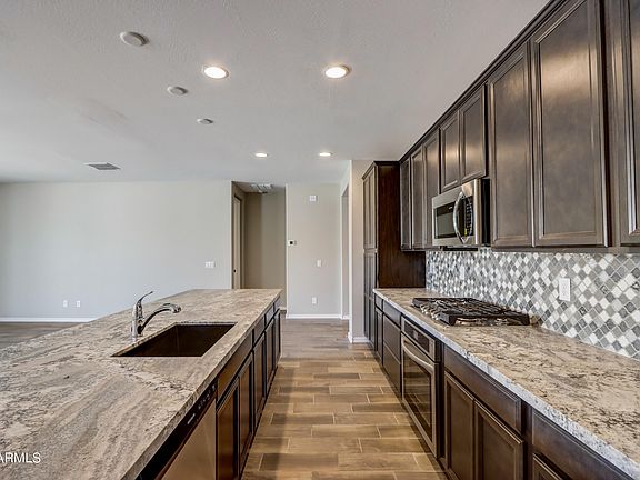 QUICK MOVE-IN! Belice floor plan. 12x8 sliding glass door off the extended covered patio, Pavers at drive, walk and entry. Large walk-in shower bath. Stainless steel gas appliance package includes a 30'' cooktop. Soft closet Tahoe maple ''Slate - gray'' cabinets with 42'' kitchen uppers. Three drawers ILO cabinets in kitchen. Base cabinets at laundry, and 36'' upper cabinets in laundry room. Monte Cristo Satin granite cabinets in kitchen and at the enhanced kitchen island. Upgrade flooring DT Emblem 7x20 grey tile in all areas of the home. Gas stub out for future BBQ. Interior two tone paint in ''Worldly Gray'' throughout the home. Window Coverings and much more.