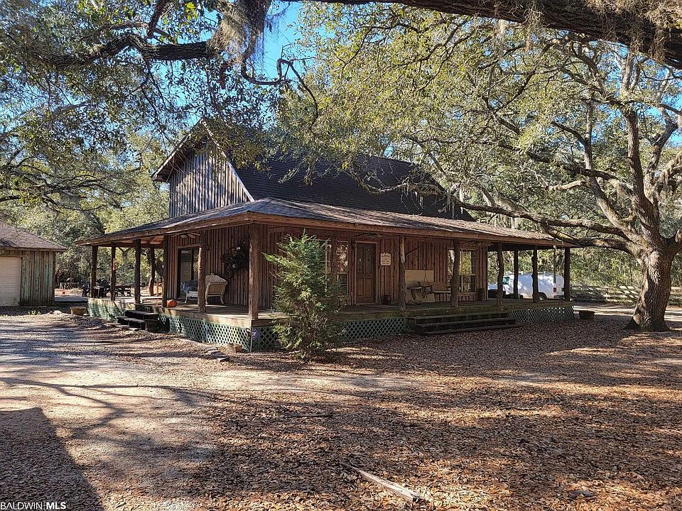 REDUCED!! Come see so you can appreciate what this home has to offer!! Country Living, Privacy, Room to expand are just a few ways to describe this property. At the end of the long, private driveway, the property opens up to a beautiful landscape of moss hanging from gorgeous mature oak trees. The home features 3 bedrooms, 2 baths, and a bonus room which can be used as a smaller bedroom, playroom, office or walk-in closet. Bring the dirt bikes and 4-wheelers, horses, goats and chickens. The property itself has a horse stable, separate fenced area for goats, dog pen and plenty of room for the chickens to roam. Other amenities include dirt bike trails, a motor home area with power and water available, pole barn for a boat, and a 3 bay open garage for tractor or vehicles. The 28x36 double door garage has a loft and a separate 12x28 tool/shop area. Attached to the garage is a covered, open air, area with a wood burning fire place, screened in cooking/eating area and a separate outdoor shower. The home was built from harvested Juniper right from the property itself. Bonus: Interior walls of the home are insulated, 2 1/4" thick pine floors in living/dining and halls, new tankless water heater on home and outdoor cooking area, septic pumped and new field lines 2020. Potential income producing area at the gate entrance. You just can't believe the possibilities with this property without seeing it. It would make the perfect place for Family/Friends gatherings or an Event Center for Weddings etc. Like to fresh water fish? Notle Creek Boat Ramp is just 4 miles away. Property is also close to Magnolia and Fish River, Weeks Bay, Bon Secour and Mobile Bay. Salt Water your thing? You're only 35 minutes to The Gulf of Mexico. Don't miss out!! Call your Realtor TODAY!
