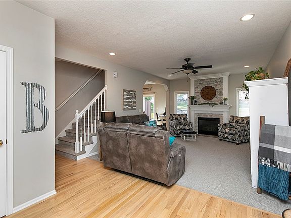 Nestled on a quiet cul-de-sac, this townhome complex is a well-kept secret, offering a serene retreat close to numerous amenities. The main level features a welcoming family room with newer carpeting and a striking floor-to-ceiling stone fireplace, complemented by white-painted woodwork and ample natural light streaming through large windows. Adjacent to the family room is a well-appointed kitchen boasting white cabinets and appliances, a pantry, and an eating area with sliders opening onto a spacious deck and patio. Mature trees provide shade and privacy in the yard, creating an ideal setting for relaxation or entertaining. Upstairs, three bedrooms await, including a master suite with generous closet space and an updated bathroom featuring a tiled step-in shower and double sinks. The lower level offers additional living space with a family room, 3/4 bath, and a versatile room suitable for use as a guest bedroom or fitness area, accompanied by plenty of storage. A security system is in place, and the property benefits from a new roof installed in 2019, and a furnace and A/C in 2022. This hidden gem combines comfort, style, and convenience, making it a coveted haven in a desirable location.