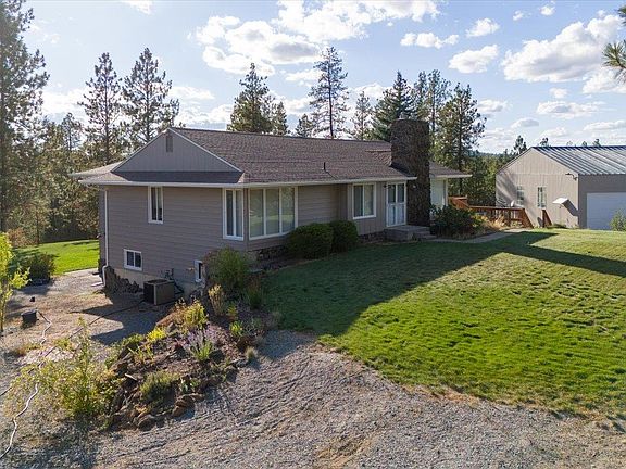 Discover the perfect blend of privacy and convenience 47+ acre security gated estate, offering the tranquility of an off-the-grid country retreat,just minutes from town, Cheney, airport, Airway Heights. Beautifully landscaped home sits on 5acres, +42.86-acre parcel included. This two-level residence is designed for comfort and versatility. The main level features 3bed, 2bath, and an oversized kitchen, perfect for entertaining. A freshly painted upper-level deck provides the ideal setting to take in breathtaking sunsets and BBQs. The lower walkout level is a self-contained living with 1bed, 1bath, full kitchen, living area, perfect ADU living or rental potential. Backup Generator, Bonus dumbwaiter, adding extra convenience between levels. also a 6,400 sq. ft. shop is the dream. 4 large bay doors 2 at 10ft and 2 at 12ft 9in and a 3ton hoist and autolift, ideal for a home-based business, workshop, or storage needs. looking for a private estate, investment opportunity, or shop space, Don't miss this!