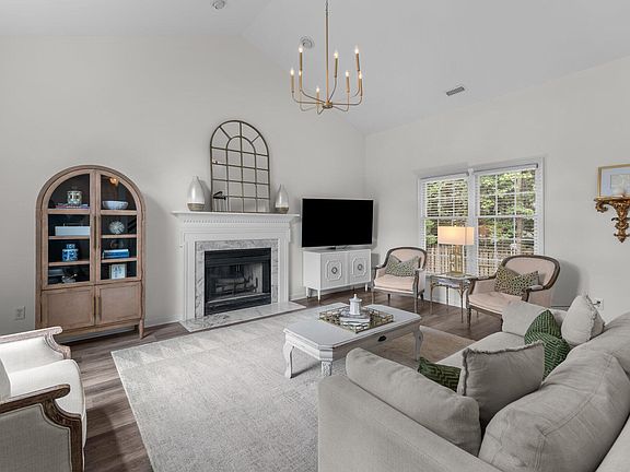 Beautifully updated 3 BR home in Harrington Grove with all new hardiplank siding. Large open living room with vaulted ceilings and fireplace. Enjoy a separate dining room and updated kitchen with granite countertops, center island, breakfast nook and recessed lighting. New fixtures and smooth ceilings throughout. Spacious primary bedroom and bathroom featuring quartz countertops, dual vanity, and walk in shower. Renovated guest bathroom. Fenced in yard with custom-built storage shed and deck. One car garage! Enjoy all this community has to offer- walking trails, playground, pool, tennis courts, volleyball court and clubhouse! Close proximity to 540, RDU and RTP.