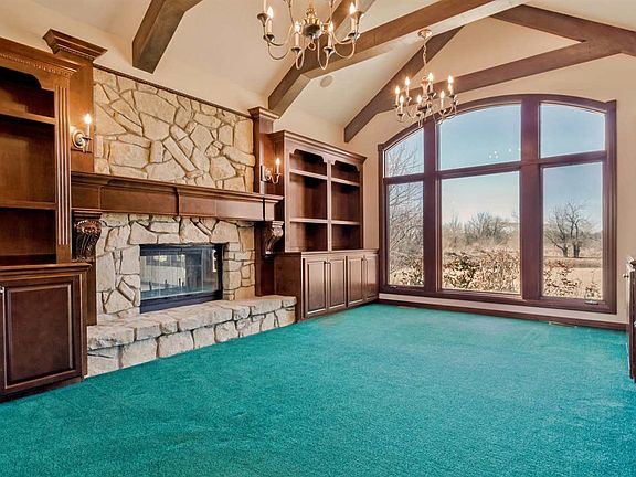 Welcome home to 8.8 gorgeous acres conveniently located just west of Augusta! This custom built one owner home boasts over 6,000 square feet with 4 bedrooms, 3 full bathrooms, 3 half bathrooms and an attached four car garage. The well appointed floor plan offers a main floor master suite, spacious rooms, main floor study, formal dining room, great room, eat-in kitchen with a gas range and double ovens, main floor laundry, attached green house and a stone patio. Windows spanning the back of the home allow for picturesque views of the incredible landscape and soak the living areas with natural sunlight. A floor to ceiling stone fireplace flanked by built-in bookcases creates a dramatic focal point in the great room; it's the perfect spot for gathering or relaxing as a family. A functional back hallway, adjacent to the kitchen, boasts a half bathroom and a large separate laundry room with a utility sink. Retreat to an extraordinary study with french doors, a two-way stone fireplace surrounded by built-ins, vaulted ceiling with wood beams and a stunning picture window with breathtaking views of the stocked pond. A second bedroom (without a closet) and a powder room complete the main level. Upstairs, you'll find two large bedrooms, a full bathroom and a fantastic second story family room with endless possibilities for a playroom, study area, lounge or gaming area. You'll love hanging out in the finished basement featuring a two-way stone fireplace, rec room, family room with built-ins, wet bar, one and a half bathrooms, bonus room, wine cellar (not thermo controlled) and extensive storage. Other features include: a stocked pond, an external back-up generator, Geothermal heating/cooling system installed in 2013, sprinkler system with well, two 50 gallon hot water tanks installed in 2015, invisible fence wiring, tile roof, lagoon, public water and natural gas. This incredible property offers country living at it's finest with easy access to all of the amenities of the city; schedule your private showing today!