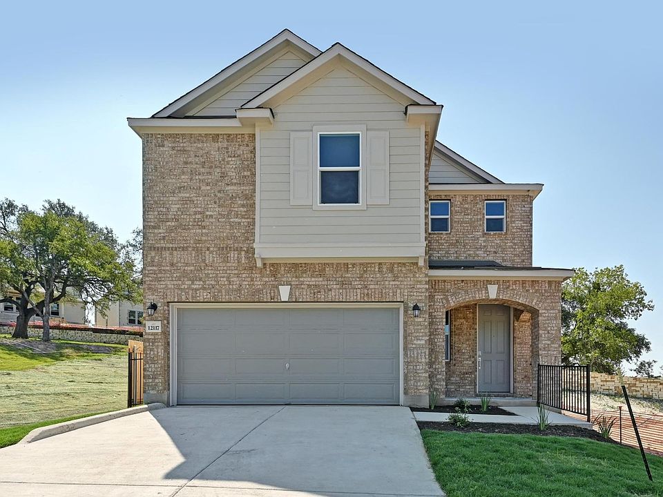 This stunning, two-story home showcases a spacious great room and stylish luxury vinyl plank flooring at main living spaces. The modern kitchen boasts Shaker-style upper cabinets, granite countertops and sleek tile backsplash. The first-floor primary bedroom features plush carpeting, a walk-in closet and connecting bath that offers a dual-sink vanity, Silestone® countertops and luxurious walk-in shower with tile surround. Upstairs, a cozy loft awaits. Additional highlights include an ecobee3 Lite smart thermostat, Sherwin-Williams® interior paint, Moen® fixtures throughout and ceiling fans at great room and primary bedroom. Step outside to the covered back patio, which is ideal for outdoor enjoyment.