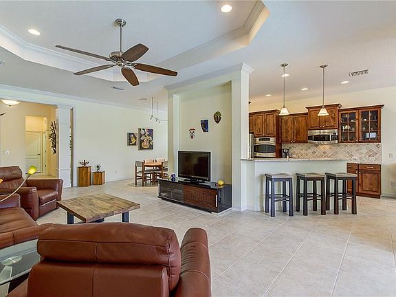 This immaculate home is nestled on one of the most pleasant streets in Country Club, and its cottage like stone frontage and mature landscaping welcomes your arrival. Open the front door and the foyer draws you into a bright and airy great room, where the dining alcove, kitchen and family room all combine to give a truly relaxing living area. From there, your eyes will be drawn to the lanai and pool, overlooking a wonderful view of the large lake and permanent preserve beyond. So peaceful and serene, it is the ideal place to sit and take in all the nature that abounds in this part of the club. Returning inside, the kitchen is a chef's delight with granite counter-tops, upgraded wooden cabinets, built in oven and stainless steel appliances. The dining area easily holds a six or eight person table, while the smaller breakfast nook is perfect for less formal meals. The master bedroom has its en-suite while the two further bedrooms share a bathroom and - together with the additional den - all have recently installed wood-look porcelain tile flooring, cool to the foot and gorgeous to look at. The rest of the house has diagonally laid porcelain tile, and the entire house was re-painted in 2015, making it an absolute gem amongst its peers. Storage is not an issue with plenty of built in closets, while a six foot extension to the garage provides space for more bulky items. The neighborhood fee includes lawn care, community pool & digital cable with high speed internet service."