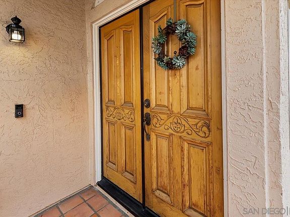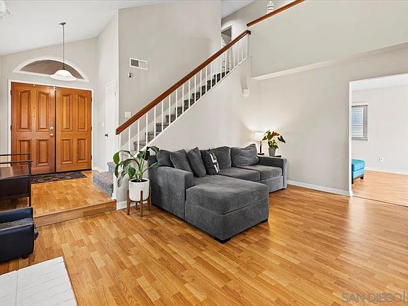 Tucked within the highly coveted Rancho San Diego community, this charming 3-bedroom, 2.5-bath residence offers a warm welcome with its striking custom double doors of rich wood. Step inside to discover a sunlit living room graced by soaring vaulted ceilings and the timeless appeal of a classic wood-burning fireplace. A neutral color palette enhances the open ambiance, while thoughtful upgrades such as newer central heating and air conditioning, solar, dual-pane windows and sliding doors plus a spacious attached two-car garage ensure modern comfort. Gleaming wood laminate floors flow effortlessly into an elegant formal dining area, setting the stage for intimate gatherings. The well-appointed kitchen is a culinary enthusiast’s dream, featuring ample cabinetry, stainless steel appliances, and gas cooking, all designed for both functionality and style. Seamlessly blending indoor and outdoor living, the home opens to a private backyard oasis—ideal for relaxed entertaining, family celebrations, or quiet moments under the sun. Upstairs, discover three inviting bedrooms, including a generously sized primary suite with a beautifully remodeled ensuite bathroom boasting dual vanities, a tile-surround shower, skylight and a large walk-in closet. Set within a walkable and vibrant neighborhood, this residence enjoys proximity to Hillsdale Middle School, Cuyamaca College, the Rancho San Diego Library, lush parks, and everyday conveniences such as Target, popular dining spots, and boutique shopping. A rare opportunity in a prized location—this home is not to be missed.