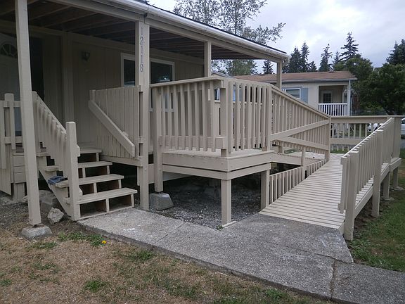 Fresh, clean,ready to move in and yes, you own the land! This better than new home has giant living spaces (including the bedrooms) and a kitchen that can fit the whole army as you try and feed them. Everything has been nicely updated- carpeting, paint, vinyl, furnace, water heater, freezer, gutters, solid commercial grade rubber roof, dbl subfloors, pellet stove, double pane windows, wheelchair ramp you can live worry free for many years to come.