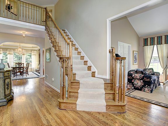 Offering a tree-lined secluded cul-de-sac location, this meticulously maintained Colonial home is situated on a premium 3+ acre lot with a picturesque view, backing up to a wooded area. Inside is 5,077sf of open living space with an abundance of natural light. The dramatic two-story foyer is inviting with a breathtaking crystal chandelier, a Palladian window and gleaming hardwood floors that continue throughout most of the main level. The foyer opens into the living room, library and a formal dining room, which features columns, a tray ceiling with hand-painted art framing an heirloom quality crystal chandelier and crown molding. A gourmet kitchen is a chef’s delight featuring maple cabinets, crown molding, a gas cook-top on a central island, a breakfast bar, corian counter-top, an instant hot and a large walk-in pantry. Adjacent to the kitchen is a sun-filled breakfast room featuring a cathedral ceiling with a wall of windows with custom window treatments. Walk-out the solarium to the expansive deck with seating areas to enjoy the magnificent view, making it an ideal spot for your morning cup of coffee. A wall of windows in the first of two family rooms allows for plenty of natural sunlight, while the gas fireplace and recessed lighting make this a warm and inviting space all year long. This level also features a sunroom with a coiffure ceiling, a conveniently located laundry room with plenty of storage and a powder room. Ascend up one of the dual staircases to find four spacious bedrooms, including a grand master bedroom with a cathedral ceiling, a gas two-sided fireplace, a generous sitting room with a balcony, dual walk-in closets, and an en suite bath with ceramic floors, jetted tub, separate shower and two vanities. Descending downstairs, the sprawling lower level offers endless options with living spaces including a game room, a second family room, a bedroom, a full bath, and a large space waiting to be finished or used as storage. The exterior offers a serene setting on a large flat lot with a brook and ornamental trees, a 3-car side-loading garage, a wrap-around deck, a balcony, a large covered patio for entertaining, landscape lighting for dramatic appeal and a playground. Home Warranty. Welcome home!