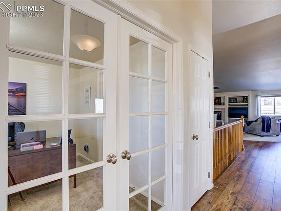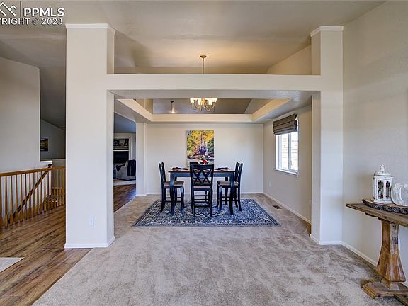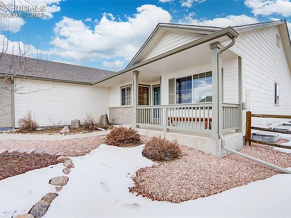 Ranch home on Antler Creek Golf Course! Woodmen Hills welcomes you with this spacious, move-in-ready home. Walking into the home you’ll immediately notice the new laminate flooring that carries you past the living room, the formal dining area, and into the kitchen. From the kitchen, you’ll enjoy the open floor plan for large gatherings, with friends and family congregating around the spacious island, eat-in dining area, and lounging around the family room fireplace, or enjoying golf course views from the walk-out dining area onto the back deck. The kitchen is upgraded with double ovens, a quick-to-boil induction cooktop, a new refrigerator, and a convenient pantry. When it’s time to retreat for the evening this main-level living offers the master bedroom with a 5-piece en-suite, 2 additional bedrooms; one of which is currently being used as the home office, another full bathroom, and an additional 1/2 bathroom. When even more space is needed, you’ll find room to roam just downstairs where there is a lovely finished basement with 2 additional bedrooms, a 3/4 bathroom, a spacious recreation room, plenty of closet storage, and an additional storage room in the lighted crawl space. When you want to get out and enjoy the community Woodmen Hills offers multiple parks, and walking trails, a small BMX-style bike course, 2 recreation centers outfitted with indoor and outdoor pools, an indoor basketball court, weight rooms, and aerobic equipment. These amenities along with a portion of your water usage are covered by the Woodmen Hills Metro District dues. Additionally, this fantastic location is of course close to the golf course, shopping, dining, and both public and charter schools are just minutes away. Even more is coming with the brand-new Falcon Market Place expansion.