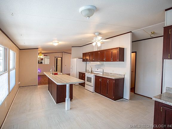 Welcome to your lakeside retreat! This charming 3-bedroom, 2-bathroom mobile home is nestled on Lake Eufaula in Mill Creek, offering the perfect blend of comfort and tranquility. As you approach, you'll be greeted by the metal roof and low-maintenance vinyl siding that add a touch of modern elegance to the property. Step inside, and you'll discover a cozy and well-designed interior, with three bedrooms providing ample space for family and guests. The primary bedroom features an ensuite bathroom for added convenience with a double vanity and walk-in shower. The kitchen/dining area is bathed in natural light, creating a warm and inviting atmosphere. The kitchen is equipped with modern appliances and offers a seamless flow into the dining area perfect for entertaining friends and family. But the real highlight of this lakeside gem is the stunning view of Lake Eufaula. Whether you're sipping your morning coffee on the screened-in porch or enjoying a sunset barbecue on the open deck, the lake's beauty will be your constant companion. The property also boasts a garage and outbuilding, providing plenty of storage space for your outdoor gear and water toys. For water enthusiasts, a conveniently located boat ramp is just a short walk away, ensuring easy access to the lake for boating, fishing, and water adventures. Imagine spending your summers cruising on the water or casting a line into the lake from your own private oasis. Whether you're seeking a wonderful summer retreat or a year-round residence, this lakeside haven offers the best of both worlds. Don't miss the opportunity to make this mobile home on Lake Eufaula your own – where every day feels like a vacation, and the beauty of nature is just outside your door.