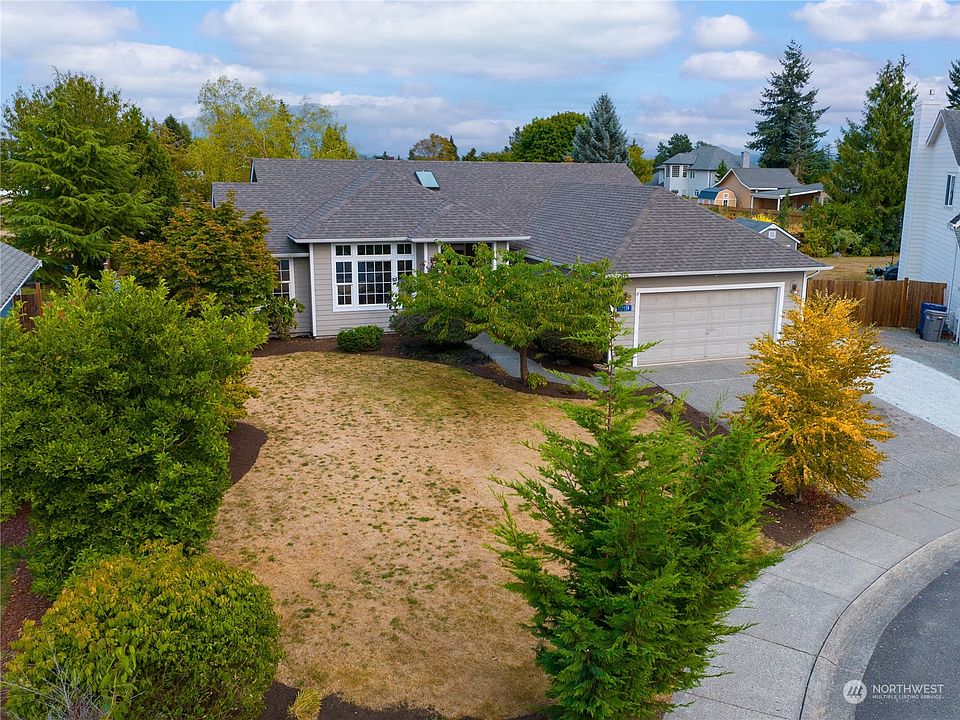 Impeccable and spacious, one level home situated on quiet cul-de-sac in desirable Bay Hill neighborhood. Entertaining space abounds with formal living and dining rooms, plus family room with vaulted ceilings, quality hardwood flooring, and gas fireplace. Appealing kitchen floor plan with stainless appliances and tons of counter & storage space opens to casual dining room and out to patio beyond. Deluxe primary suite with walk-in closet, walk-in shower, double vanity - even a sliding door and private deck to enjoy the lush gardens. Fresh interior paint & trim. Air conditioning for toasty summer days! Beautifully landscaped fenced yard with stamped concrete patio for entertaining. New roof in 2020. Easy I-5 access. This home is ready for you!