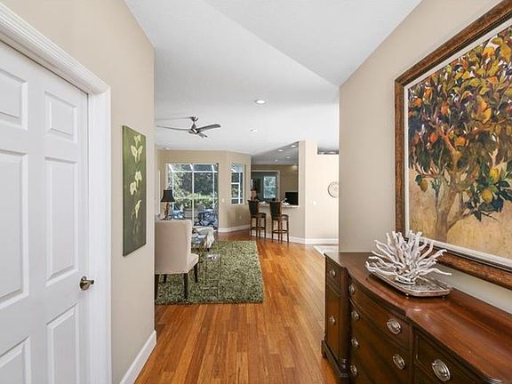 Come live the maintenance free lifestyle in the Hammocks section of River Wilderness. Nestled on a preserve, this rarely available home offers 3 generous bedrooms, 2 baths plus a bonus room/den/4th bdrm. The stunning interior features beautiful bamboo flooring & a bright & open floor plan that easily flows from one room to another. Perfect for entertaining with a formal living and dining room with easy access to the kitchen & outdoor space. The newly updated, custom designed kitchen features granite countertops, stainless steel appliances, tumbled marble backsplash, center island, breakfast bar, and a large pantry with roll-out shelving. Prepare meals overlooking the spacious family room with built-in bookcase. Open the sliders and relax on the extended screened lanai, with covered seating area, sparkling pool w/ fountain, and peaceful preserve views. Retire to the large master suite that easily accommodates a king sized bed, & includes a seating area & large walk-in closet outfitted w/ a custom closet system. The ensuite bath features dual sinks, soaking tub, fan, & separate shower. Your guests won't want to leave! 2 guest bedrooms flank a bathroom that gives them a very private area. The bonus room can be used as an office or study; its peaceful preserve view offers a quiet getaway. Other features include a 2 car garage, tankless water heater, laundry room, & high-efficiency A/C system installed in 2014. Located in a gated, amenity-rich community with no CDD fees and optional golf and social membership.
