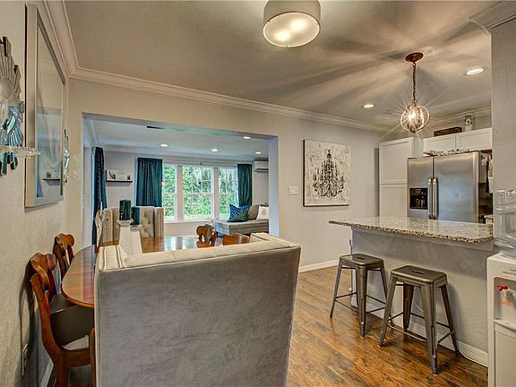- Ceiling Fans(s), Open Floorplan, Split Bedroom, Stone Counters, Crown Molding, Solid Wood Cabinets, Living Room/Dining Room Combo