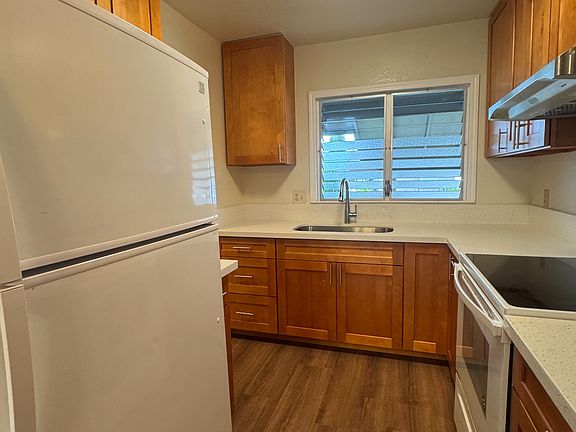 2 Bedroom, 1 Bathroom upstairs unit at Alii Plantation 3. This unit was recently renovated with new vinyl flooring, interior painting, and a new kitchen which feature new kitchen cabinets and countertops. There is 1 open parking stall located in front of the building along with the unit mailbox. Alii Plantation is centrally located near Aloha Stadium, Ice Palace, and Radford High School. You are in close proximity to the Daniel K. Inouye Airport and other communities like Moanalua, Aiea, Pearl City, and Halawa. Water and sewer is included, the tenant is responsible for electricity and cable/internet. NO SMOKING, NO MEDICAL OR NON-MEDICAL MARIJUANA, NO E-CIGARETTES OR VAPING, NO PETS. Online applications are available once you attend a showing. There is a $25 application fee with a credit check and background check.