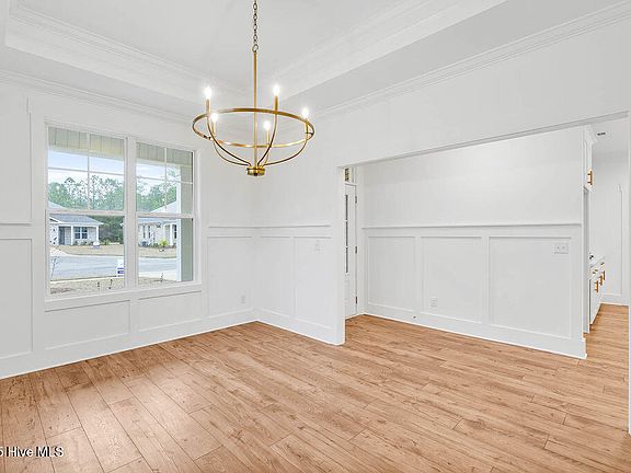 Enjoy all of the benefits of new construction in this new villa by American Homesmith. A charming rocking chair front porch beckons you as you approach, setting the stage for a lifestyle that's relaxed and maintenance-free. Step inside, and an inviting foyer greets you, seamlessly flowing into a dining area adorned with intricate wainscoting and a tray ceiling instantly creating a warm and inviting ambiance for gatherings. Laminate flooring, not only exuding elegance but also adding easy upkeep, guides you through this open-concept living space, smoothly integrating the dining area, great room, and kitchen. The great room is a true focal point, boasting a tray ceiling and a gas fireplace enveloped by custom built-ins. The kitchen, with a substantial island at its heart, is ideal for socializing while preparing meals. It showcases stainless steel appliances, tile backsplash, and quartz countertops. A pantry and additional storage are thoughtfully located in the laundry room just off the kitchen and garage. The primary suite, is a private, personal retreat. It features a tray ceiling, walk-in closet fitted with wood slat shelving, and an en suite bathroom that's spa-like in its allure. This bathroom boasts a fully tiled walk-in shower, double sink vanity, linen closet, and private water closet. Two generously proportioned guest bedrooms with a hall bathroom, ensure ample space and comfort for family or visitors. Enjoy the privacy of your outdoor screened porch with patio. Palmetto Creek's allure extends beyond your doorstep, with its proximity to the pristine beaches of Oak Island and Holden Beach. Within the community, a world of amenities awaits, including a clubhouse with a resort-style pool, fitness center, trails, tennis courts, and a putting green. Additionally, a kayak and canoe launch allows you to explore the tranquil waters. This location is truly the epitome of coastal living.