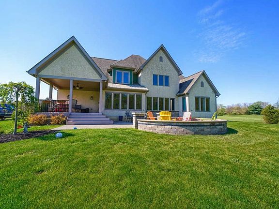 Back a paved lane sits this true custom build on nearly 2-acres backing to hundreds of acres of Havener Woods. Nature abounds! Nearly 5500 SF of finished living area including the multi-purpose lower level with egress window bank and walk-up to side of home. Featuring a 1st floor owner's suite with spa style bath, 2-story great room and entry, chef's center island kitchen with breakfast room, walnut hardwood floors, custom maple cabinetry, barn sink, built-in appliances and a commercial Thermador range.This property has all of the high end features and amenities you desire and need including highly efficient geothermal heating and cooling, Kohler generator, central vac, invisible fencing, theater room with surround sound, heated bathroom floors, 3-zone HVAC, and security with video.