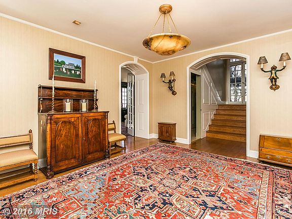 Storybook stone home majestically sited on 3.5 acres w/bucolic views. Foyer leads to handsome Lib w/built-ins & FP, oversized LR w/bay window. Formal Dr leads to gourmet Kit w/FP, adj FamRm w/FP. 2nd floor MBR w/SittRm & SpaBa + 2 en-suite BRs. Walk-out LL w/2 BRs suites & MediaRm. 3 car garage w/great guest suite above. Extensively landscaped w/stone walls & patios, magnificent old growth trees.