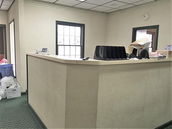 This 2100 Sq ft commercial building can be utilized as one or two units. Lower level was previously a dentist office consists of 1500 square ft. 7 offices. 2 Restrooms. Prep Area/lab with sink. Reception Area, waiting room. Upper unit is rented separately as office space and consists of 600 square ft. Utilities are separated. Newer heat pump with gas backup downstairs and electric heat pump upstairs. Move in ready. High traffic location near intersection.