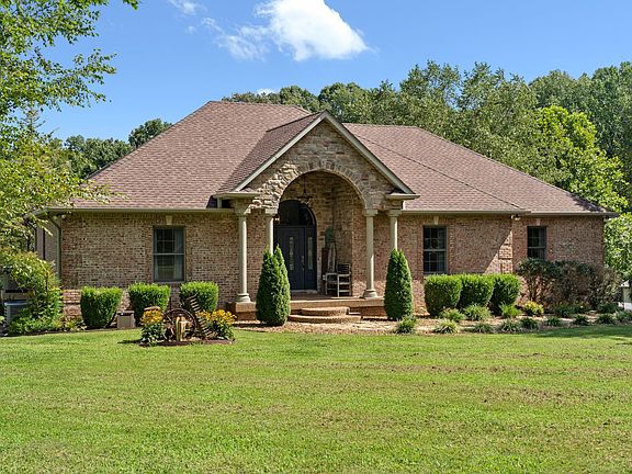 Beautiful & private 3bd/3ba all brick ranch house on a full basement with 11.88 acres (two parcels). Many recent updates - paint, light fixtures, remodeled kitchen w/luxury Cambria quartz, remodeled primary bathroom, maple hardwood floors, new shiplap & brick fireplace w/reclaimed wood mantle. Fully finished walk out basement with LVP floors, 2nd kitchen, laundry hook-up, makes a great in-law suite, 1 car heat/ cooled garage (811sqft). Basement garage has additional storage area. Stocked pond, 40x71(total under roof) insulated shop with electricity, water, carport, & industrial garage door. Perfect for a mini farm or multi-generational living. Centrally located between Nashville & Clarksville. Sellers open to VA loan assumption process. Provide proof of funds with assumption offer.