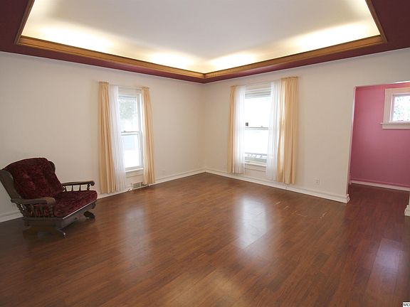 MAKE THIS ONE YOUR OWN - GREAT OPEN SPACE FROM THE MOMENT YOU WALK IN! The original hardwoods are underneath the laminate flooring throughout the main level, the bedroom being used for laundry with built in loft storage provides a sneak peek at the wood floors. You have a clear line of sight as soon as you enter the home with the tray ceiling featured in the living room which carries over into the huge dining room & over to the kitchen. Large kitchen with loads of cabinets. Two bedrooms flank the bathroom with the third bedroom of the dining room. There is a back addition off the kitchen with bonus living space, extra bedroom or a perfect room to store all the plants with oh so many windows. The half bath is tucked inside the back room. A breezeway connects the garage, convenient space to drop coats and shoes. Rear yard has ample room for a garden. Flooring allowance being offered. Garage access off the alley. Check out all this home has to offer with your Realtor today!