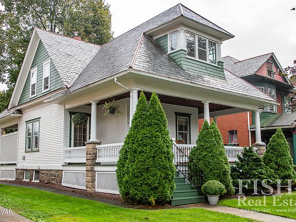 Come take a look at this beautiful Victorian bungalow. Inside you will find gorgeous original woodwork and details along with a brand new kitchen and bathroom. This home is more spacious than it appears. The first floor has a dining room, living room, den and kitchen with large pantry and enclosed porch. The second floor has three bedrooms, one with an enclosed porch, and a tiled bathroom. There is a basement with laundry and storage room and a detached one car garage with extra parking space. The backyard has a slate patio and the home also has a large covered front porch.