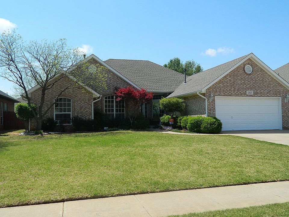 Beautiful open,flexible floorpan with 4 beds or 3 beds w/study with storm shelter.Tile in living,hall & master.Wood floors in kitchen & dining.Charming dining with large picture windows and window seats.Perfect for enjoying your coffee in the morning. Kitchen features newer built in appliances, breakfast bar & pantry.Generous den with cozy fireplace.Spacious master w/private patio access, tile floors. Master bath is a retreat with jet tub, shower and separate vanities. Roomy bedrooms with ceiling fans.Home is within walking distance to pool and clubhouse.Close to schools, shopping and commute. All thats needed is you!!!