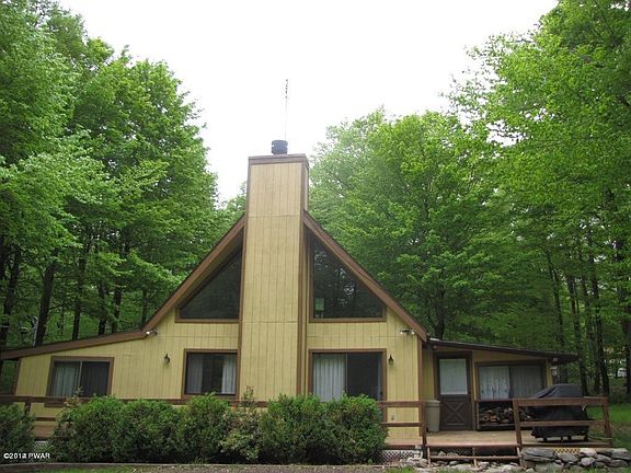 Promised Land State Park & State Game Lands are the neighbors to Sky View Lake Estates. A quiet community with pool, Sky View Lake, fishing, boating, clubhouse are the amenities when you own this beautiful Chalet in the woods. Features Master Suite, Hot Tub room, four season sun room, 3 bedrooms 2 full baths, hardwood floor, skylights, T&G ceilings,tile bath floors, stone-faced fireplace! Move right in as furniture comes with the Chalet! Yours to ENJOY! Storage shed in rear!, Beds Description: 1 BED 2nd, Beds Description: 2+Bed1st, Beds Description: 1 BED 2nd, Baths: 2 Bath Lev 1, Eating Area: Dining Area, Eating Area: Modern KT