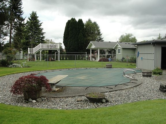 Opportunity knocks! 2136 square feet with 4+ bedrooms on 1/4+ acre lot w/in-ground pool! Classic NW rambler with double carport needs cosmetic updates to really sine- but what great bones to start with! Main living area boasts huge picture window, masonry fireplace with tiled hearth and wood paneling on the walls. Open concept kitchen with ample cabinetry, eating bar and full pantry. Adjacent dining space with additional storage. Large utility room. 4 bedrooms, including master w/private bath.