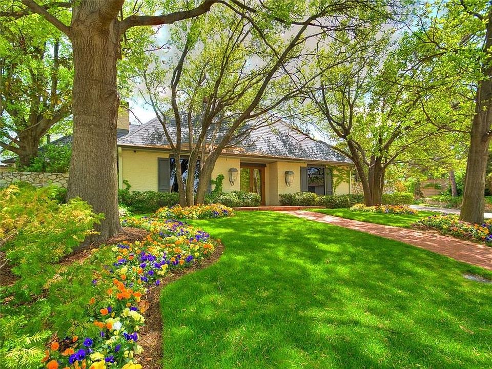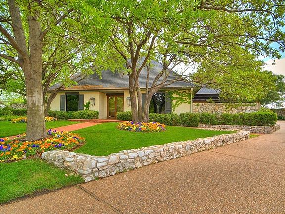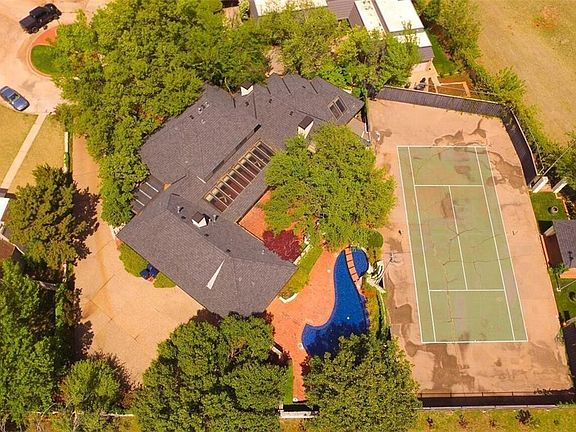 Tucked in the back of a cul-de-sac in a quiet corner of Glenbrook nestled amongst tall mature oak trees. Come make this your own private oasis. Fantastic home. Open floor plan. Approximately .57 acres lot. All tile pool & full tennis court. Great layout with master suite on 1st floor that has separate his & her bath & closets plus large study/office with vaulted ceiling & fireplace looking out to pretty courtyard. Large kitchen with island opens to 2 living areas. One living area has beautiful curving wood bar & approximately 10 foot long wine closets with stain glass doors. Large formal dining. Formal living looks out to courtyard. Two separate upstair areas each served by their own stairways. First upstairs area has stairway from front entry & goes to central landing that serves 2 beds & 1 bath. Second upstairs area has stairway by back door & is three connecting rooms & full bath.Side entry garage is not visible from street. Walk to Classen Curve, Whole Foods & Nichols Hills Plaza.