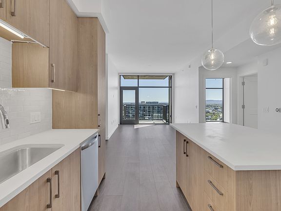 New building, new you. Perched up on the 26th floor, check out all the views from your balcony or the short elevator ride to the rooftop pool deck and amenity floor with office spaces and sitting areas overlooking the amazing skyline. This one bedroom unit is one of the best in the building. Double vanities with a tub encased in the shower room. Huge walk in closet with W/D enclosed. This space pulls it all together for you. Give me a call/text for a tour.