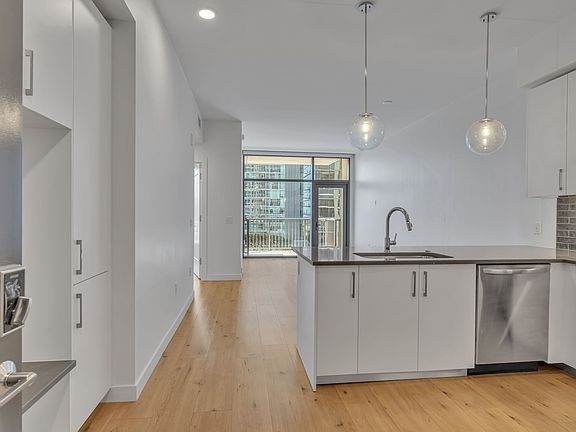 Be the first to live in this amazing new development with premiums that abound inside the building and all the city has to offer within walking distance. Walk straight in and let go immediately with a drop zone right inside the unit. There is plenty of space for options for a dining space or expand the living room. Enjoy the large walk in closet with washer and dryer within. Soak in the views on the balcony or really soak in the views from the rooftop pool. 2 pickleball courts outside of the fitness center only 2 floors down on the 6th floor. One parking space included. Tenant pays electric, water, and internet