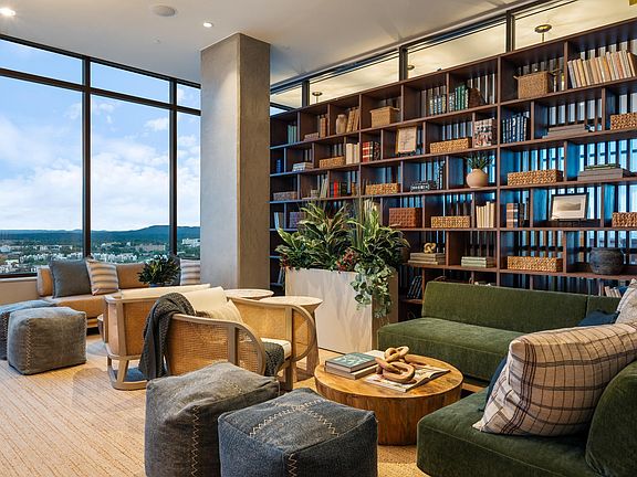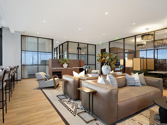 - Exterior features: 24/7 Manned front desk, Dedicated Coworking Area, Fire pit, Game Room, Heating system: Forced Air, Pickleball Courts, TV Lounge, View Type: Downtown views, coffee shop