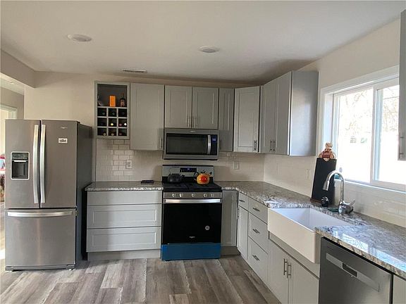 Gorgeous 3 bedroom/2 bath ranch home totally refurbished and renovated--like new from the inside out! Open concept living and new vinyal plank flooring everywhere. Kitchen has granite countertops, beautiful painted cabinets, gas stove/oven, built-in microwave, water and ice refrigerator, dishwasher--all appliances are Whirlpool stainless steel and staying with the home. Main suite has walk-in closet with beautifully tiled walk-in shower and extra storage. Lovely soaker tub in hall bath with shower and extra storage. Walk through pantry and laundry/mud room. Two car attached garage. Shed. Treed lot is almost 1/2 acre in city limits. Plenty of space here! Make your showing appointment today! This home is like new!