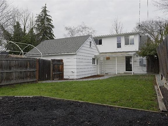 Cute older East Medford charmer with white cedar shakes, black shutters, covered front porch with brick columns, white picked fence in front yard with new lawn in front & back with large fenced backyard with alley access to RV parking or 3 cars. Many new updates from all new carpet, new range w/ glass cook top, newer heat pump, & new exterior paint & new interior paint, and new roof on both buildings. Main home that is 1212 sq ft w/great den/office off master suite upstairs, plus studio that has a wall A/C & heater built in. Studio with lg walk in closet and good size laundry room with large sink and hobby area in laundry room. 3rd bedroom or great hobby room in detached studio . Zoning is MFR-20 for multi family. Studio was used for many years as a business called CruiseOne.