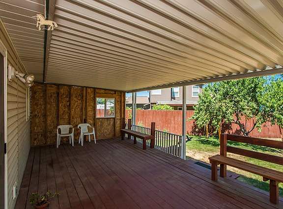 Great home on large lot in quiet culdesac location. Large open living room with corner gas fireplace & new carpet in living room/hallway. Desirable split bedroom floorplan. Large sliding door leads you to the expansive covered patio in large backyard. Great for year round use and entertaining! Large backyard also features mature fruit trees including apple and peach trees. Plus pressurized irrigation is included in the annual HOA dues! Convenient location, close to shopping & easy freeway access.