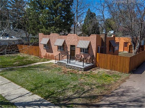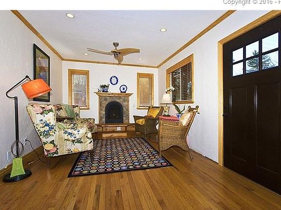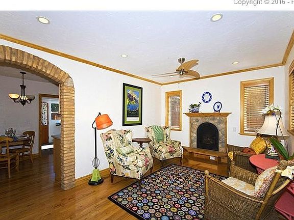 EXCITING - cozy cottage with amazing character! Beautifully maintained & tastefully upgraded w/details including B&B style fireplace, oak floors, wood French doors, interior stone archway giving that perfect touch of charm.*Brand New carpet* Kitchen w/brand new stainless steel appliances, wonderful gas stove, Corian counters, & stylish cabinets.*new windows*separate sunroom/laundry room* Front concrete patio & wrought iron railing. Corner lot. Detached matching 2-car tandem garage w/plenty of extra parking. Great location! - Near parks, golf course, hospital, easy Hwy access. The backyard feels like a Taos Village ??? Private and safe fenced yard w/mature trees. Any and all appliances are included, all wood blinds including hardware, washer/dryer.
